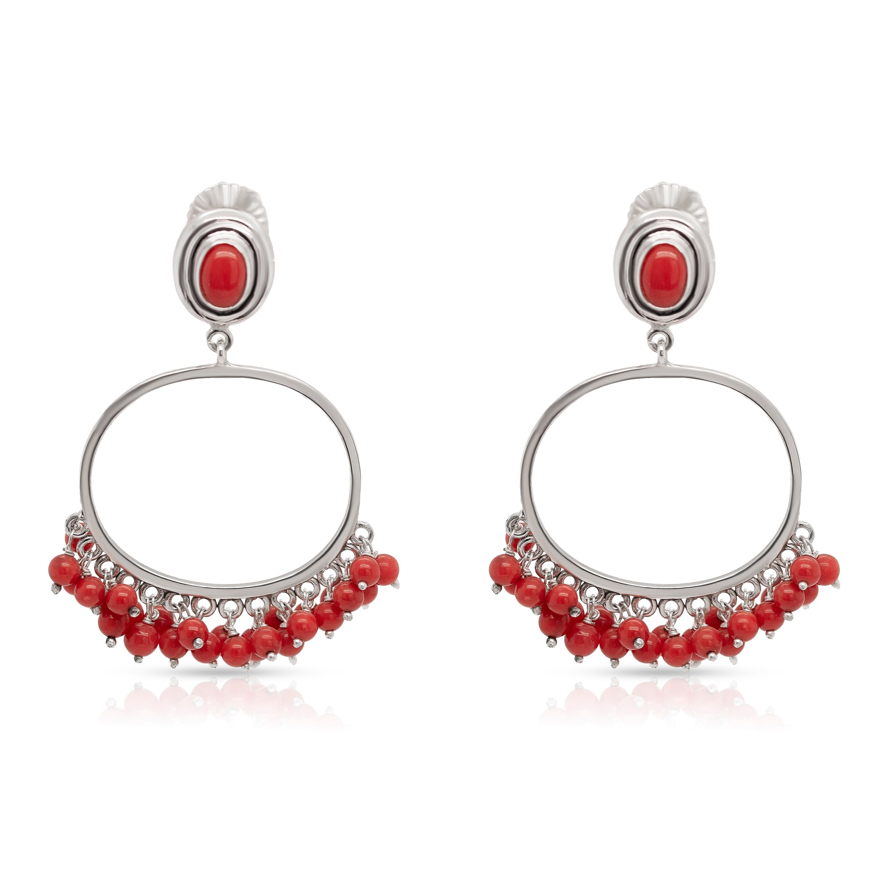 925 Sterling Silver Hoop and Coral Beads Earrings