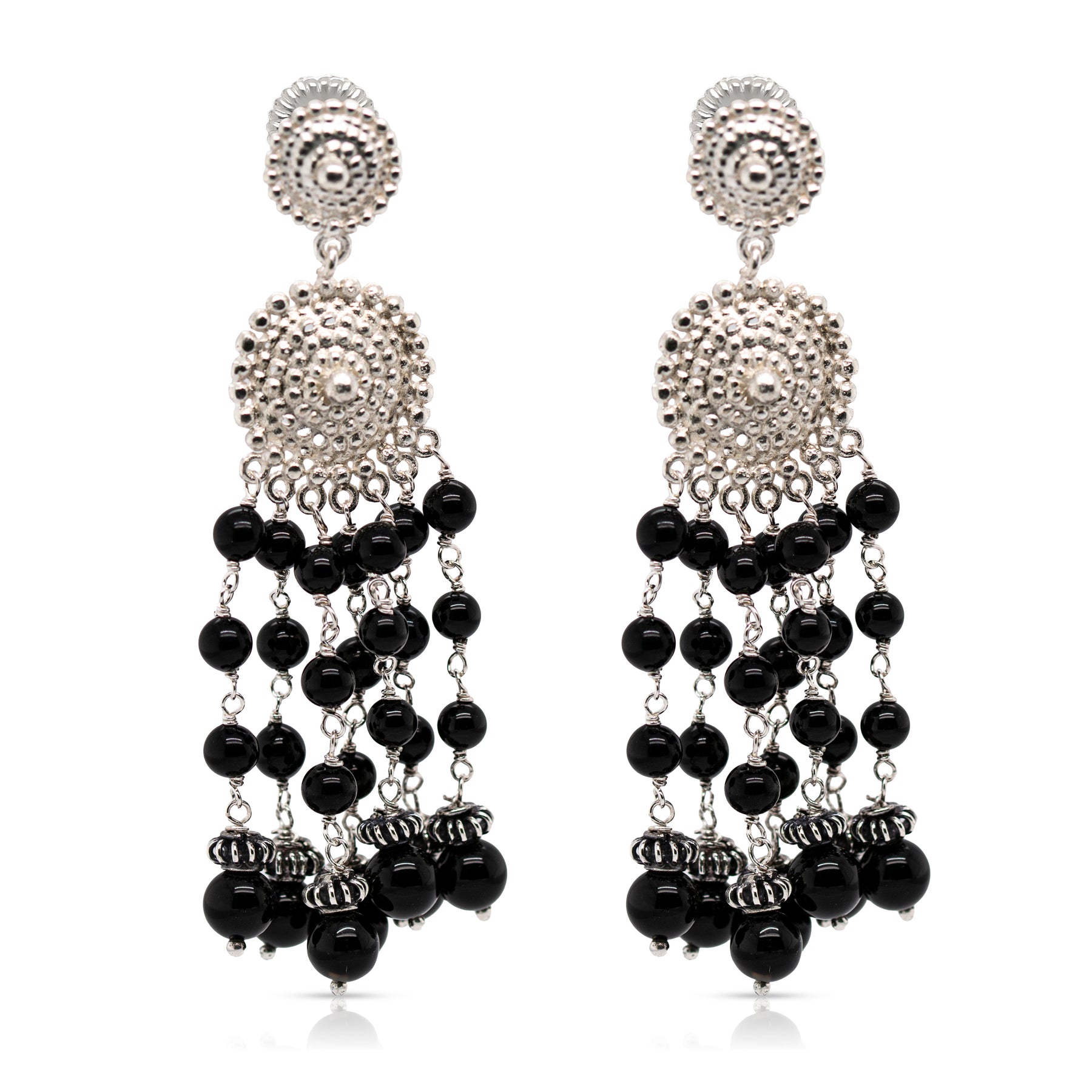 925 Sterling Silver Medallion and Black Onyx Braided Beads Cascade Earrings