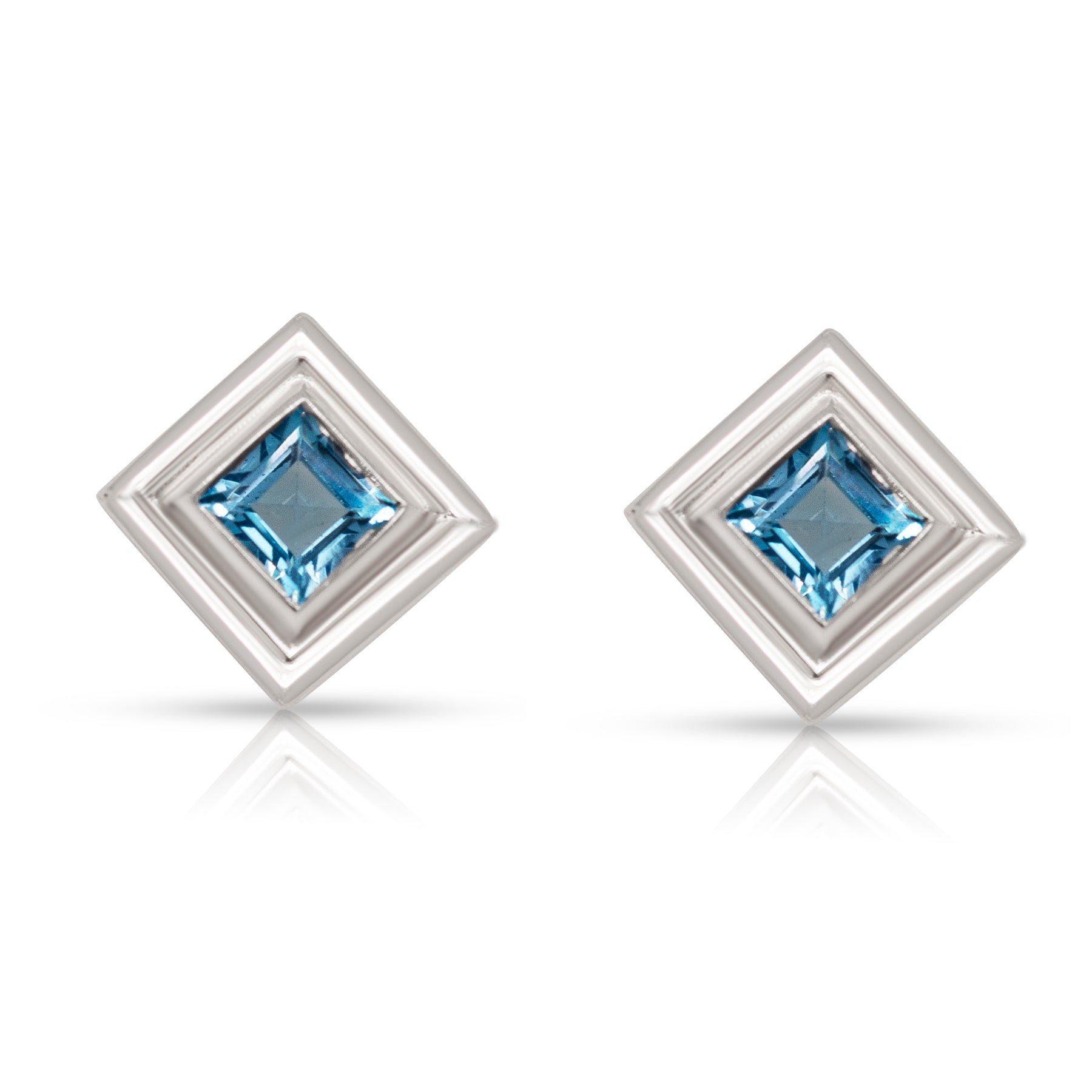 925 Sterling Silver Square Blue Topaz Earring Studs