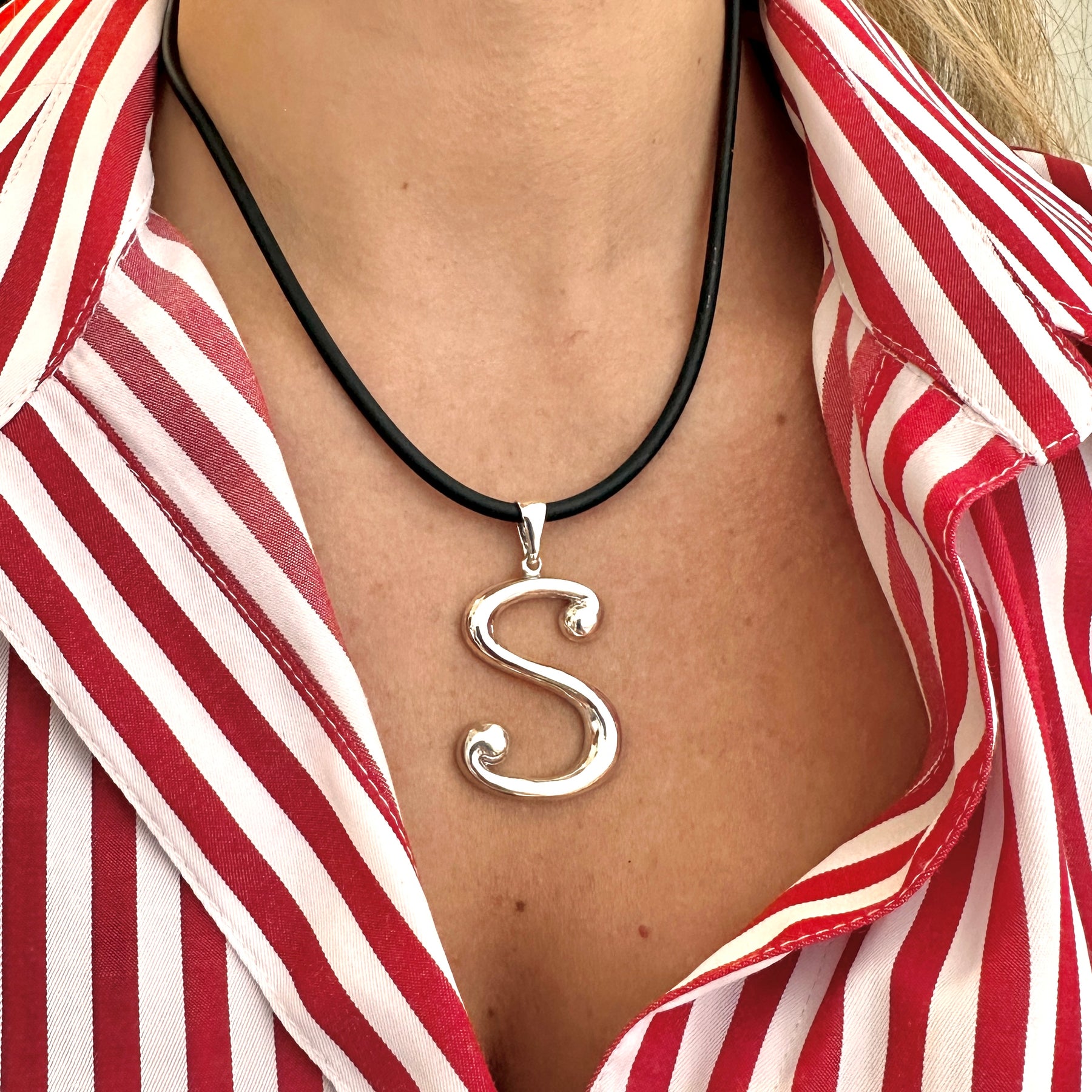 Purchase options: You can choose to buy the initial charm alone or together with the black rubber choker for a complete, layered look.