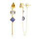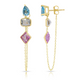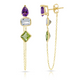 14K Yellow Gold Drop, Emerald And Princess Cut Amethyst, White And Peridot Gemstones Chain Studs